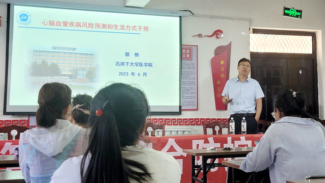 今年年初85Tube 党委与石河子市红山街道33社区签订共建协议,提出为社区定期开展“送健康义诊”项目。按照项目要求,2023年6月7日下午85Tube 预防医学系郭恒老师来到石河子市红山街道为32、33社区开展“心脑血管疾病防治”专题讲座。