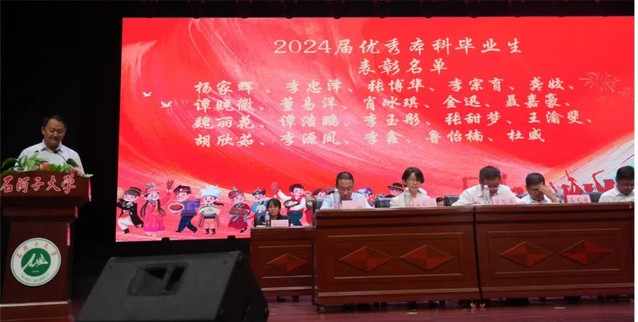 大会第九项 为2024届校级本科、研究生、留学生优秀毕业生的学生代表颁奖。
