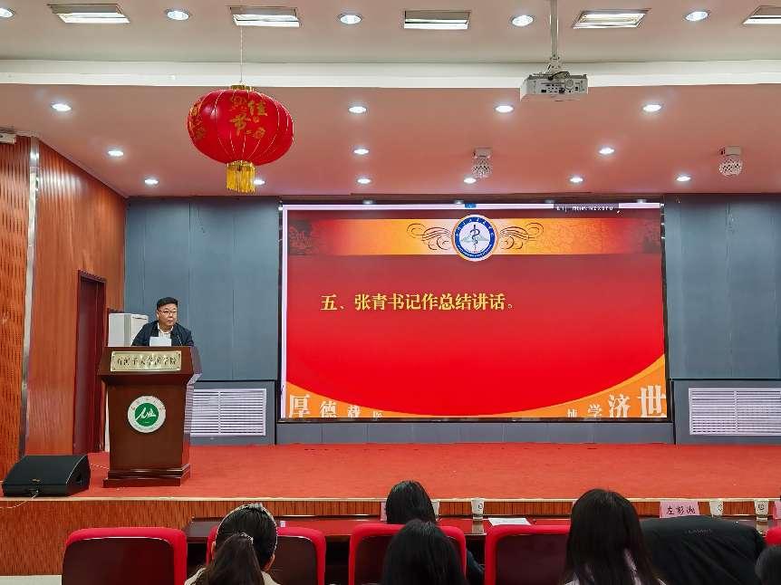 张青书记作总结讲话,他强调,新学期全体教职工要筑牢安全意识,守住安全底线,以立德树人为根本,加强校园文化建设,在不断为师生解决问题和困难中树立党的威信,增强凝聚力,共同推动学院各项工作再上新台阶。他要求,新学期全体教职工要鼓足干劲,奋力拼搏,团结协作,在思想和工作中做到“两要”,即思想上要旗帜鲜明讲政治、大大方方谈思想、理直气壮树正气;政治上要在谋划发展上下功夫、在研究政策上下功夫,在推动工作上下功夫,在服务师生上下功夫,以更加饱满的热情投入到新学期工作中,为推动医学教育高质量发展贡献力量。