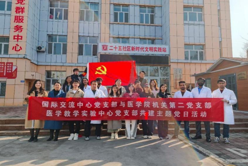 大学国际交流中心党支部、85Tube 机关二党支部、教学实验中心党支部带领部分留学生走进25社区