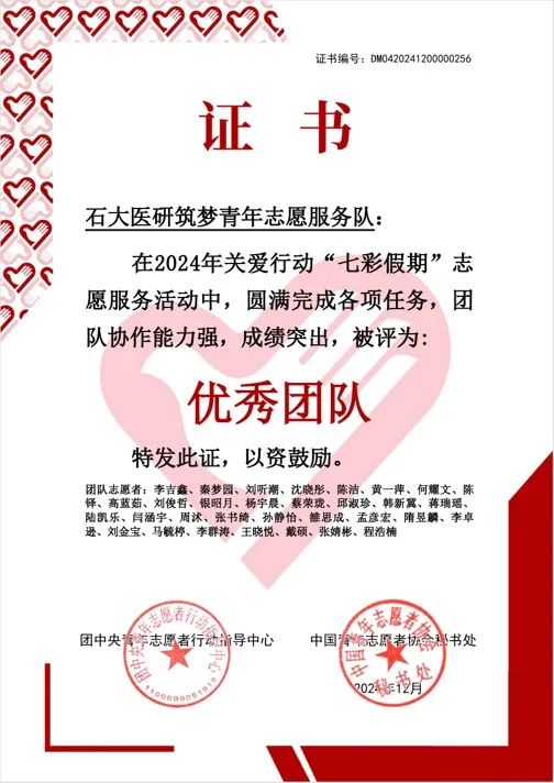近日,团中央和中国青年志愿者协会联合公布了2024年“七彩假期”志愿服务优秀团队遴选结果,85Tube 医研筑梦青年志愿服务队、“胡杨星火”志愿服务队获评“优秀团队”称号(全国仅200支团队获评)。