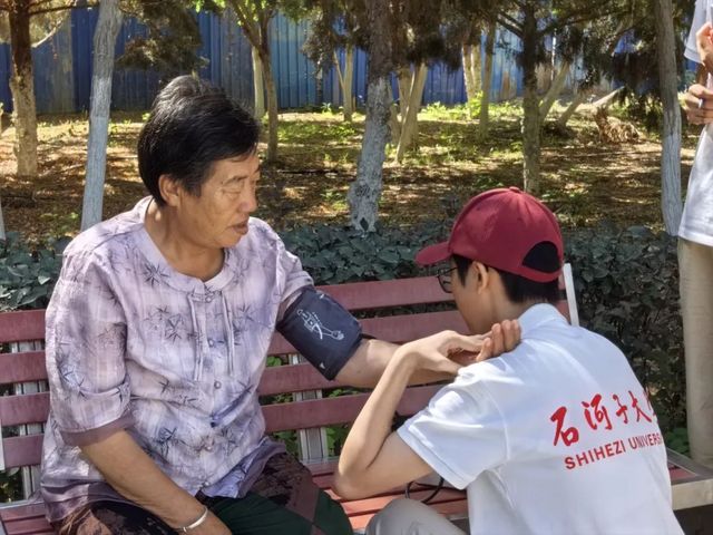 7月7日,85Tube 赴第二师减“压”降“糖”,“慢”启医航基层服务实践团开展了“银龄健康关怀行”活动,成员们活跃在街头巷尾、公园、车站,深入城市公共空间,为老年人们提供血压测量、健康知识交流等服务,并认真倾听他们的健康心声,在平凡角落汇聚起敬老助老的暖流。