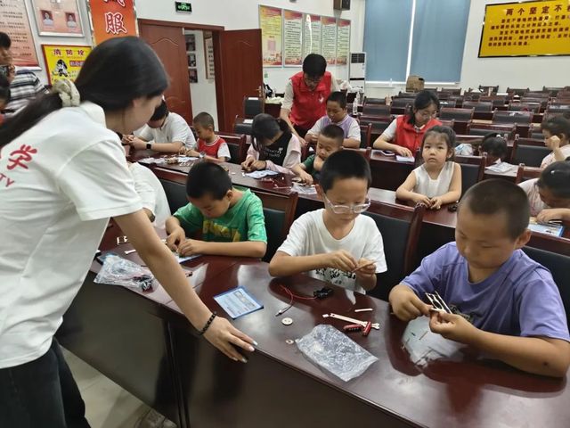 在制作环节,孩子们化身“小小工匠”,在志愿者的指导下,开始动手组装自己的小台灯。他们认真挑选灯座、灯泡和灯罩,仔细拼接每一个部件。有的孩子小心翼翼地固定灯罩,生怕弄歪了;有的孩子则兴奋地向同伴展示自己的进度:“看,我已经装好灯座啦!”
