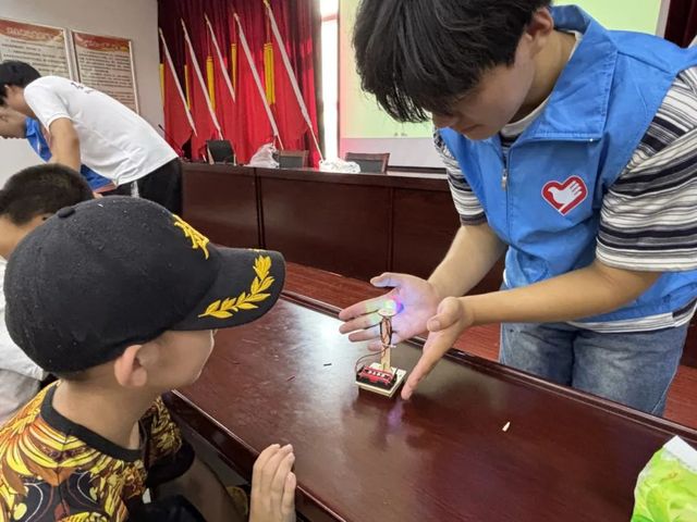 活动接近尾声,孩子们仍舍不得放下手中的小台灯,有的和小伙伴比较谁的小台灯更精致,有的则缠着志愿者询问更多关于电路和灯饰的知识。志愿者们看着孩子们眼中闪烁的创意光芒。
