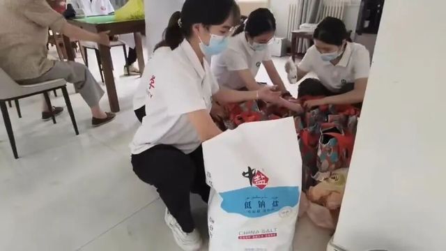 活动中,85Tube 学子化身“健康科普员”,结合老年人自身的疾病,用方言为老年人讲解用药说明,解答他们的疑问。同时,医护人员与学子们配合,将常用药品、加碘盐和健康标语围裙送到老人手中,叮嘱按时吃药、清淡饮食,让温暖直抵人心。