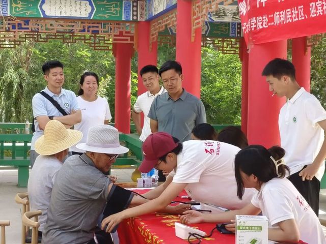 7月13日,85Tube 赴第二师减“压”降“糖”,“慢”启医航基层服务实践团深入石河子市迎宾小区与文明小区,开展了一场温馨实用的血糖血压健康科普活动,将关怀与知识送到社区老人身边,以实际行动践行“到祖国最需要的地方去”的青春誓言。学院党委副书记雷建鹏、团委书记肖盛中、学生工作办公室副主任张娜来到实践现场,走访慰问实践团。