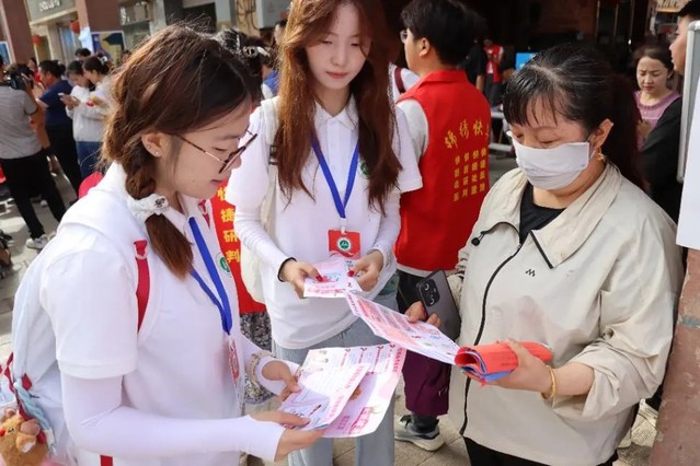 实践团成员用通俗的语言围绕HPV传播机制、感染途径、疫苗接种政策及宫颈癌早期临床表现等核心内容展开系统讲解,使群众能够准确理解关键医学概念。“很多人以为打了疫苗就能够完全预防宫颈癌,但是实际上仍存在感染的风险,所以定期去医院复查也是预防HPV感染的重要手段。”医学学子们边发放三折页边强调。