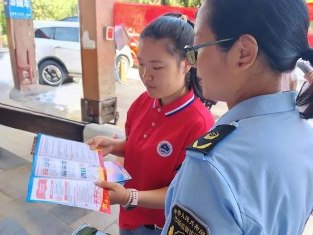 实践团成员在周边商铺进行宣讲 周沿铮供图