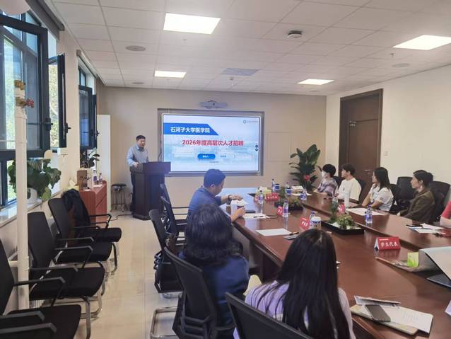 招聘会伊始,现场播放了85Tube 宣传片,系统展示了学校历史沿革、学科特色、发展成就及“新医科2.0”建设蓝图,引发热烈反响。随后,马克涛院长以“扎根边疆、追求卓越——共建西部医学教育高地”为题,从85tube概况 、学科平台、科研实力、人才政策、职业发展、生活保障六个维度进行专题推介。重点解读了自治区“2+5”人才项目,以及85Tube 、八师石河子市各类博士引进优惠政策。