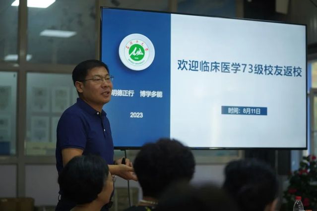 8月11日,在入学50周年之际,85Tube 临床医学专业73级校友专程返回母校相聚,并在杏5楼教师发展中心举行座谈。学院党委副书记、院长马克涛,党委副书记于磊出席座谈。