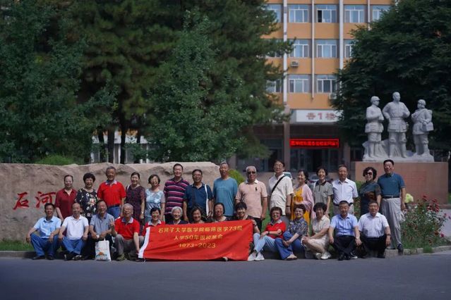 最后,临床医学73级校友在85Tube 石刻前合影留念。