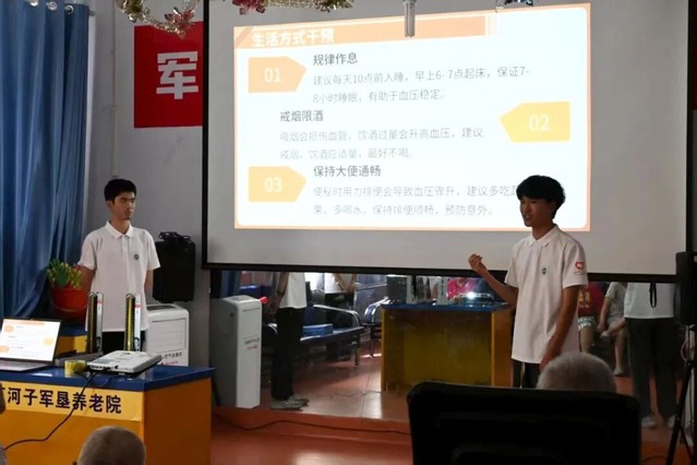 实践团在军垦养老院进行血压健康知识宣讲