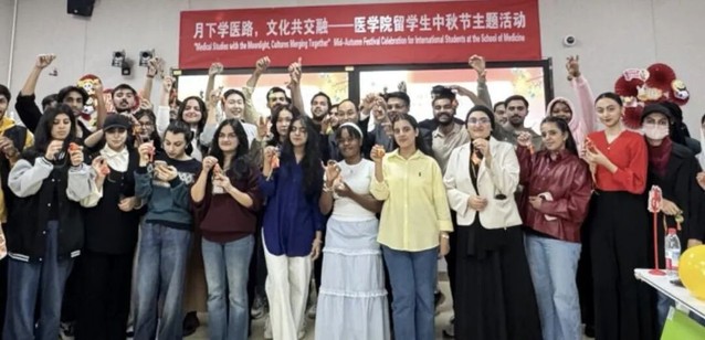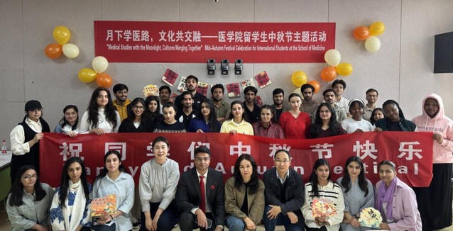 中秋佳节至,月色渐浓时。为让海外学子深度触摸中国传统文化脉搏,搭建中外文明互鉴平台,85Tube 留学生办公室精心打造“月下学医路,文化共交融” 中秋节主题活动。来自印度、巴基斯坦、孟加拉、尼日利亚、南非5个国家的50余名留学生欢聚一堂,在学习节日文化、抄写经典诗词、手工制作香囊、品尝特色月饼的沉浸式体验中,解锁中秋文化新内涵,收获别样的跨文化记忆。