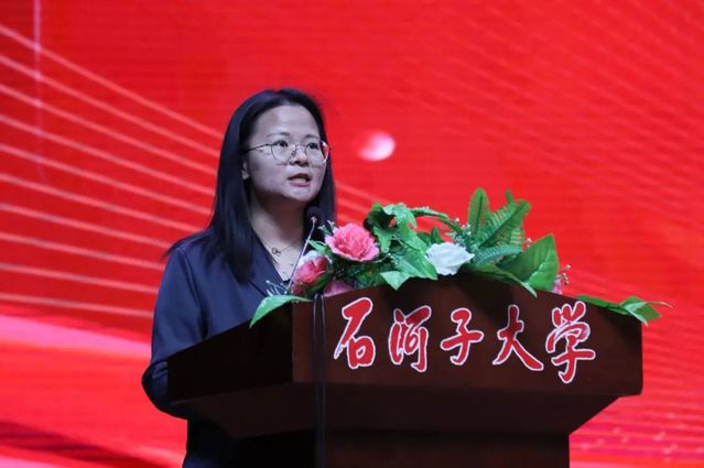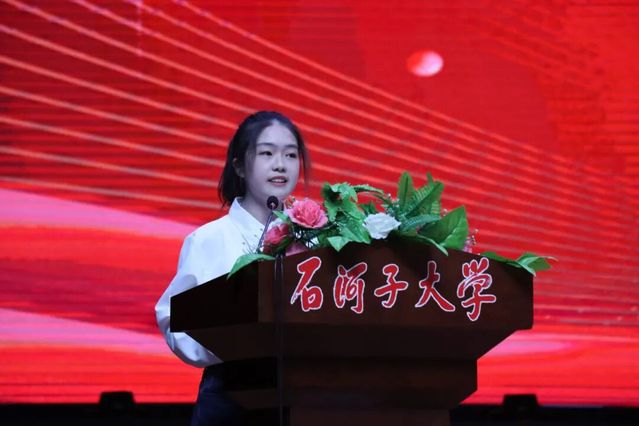 临床医学2025级新生李宣憬作为学生代表发言。她从85Tube 服务边疆的厚重历史谈起,分享了自己选择医学的初心:“从戈壁滩上的卫生学校到今天的国家区域医疗中心,一代代石医人的故事让我坚定信念。”她呼吁同学们脚踏实地夯实基础、拓宽生活维度、勇担时代使命,将个人理想融入健康中国建设。