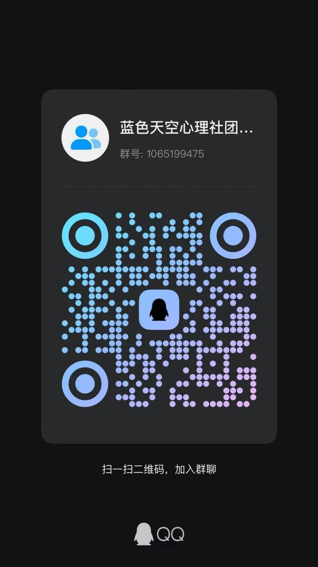 蓝色天空,因你更蓝;心灵晴空,等你共筑!期待与你相遇,共赴这场“从心出发”的成长之约!欢迎大家扫下面二维码加入迎新群~