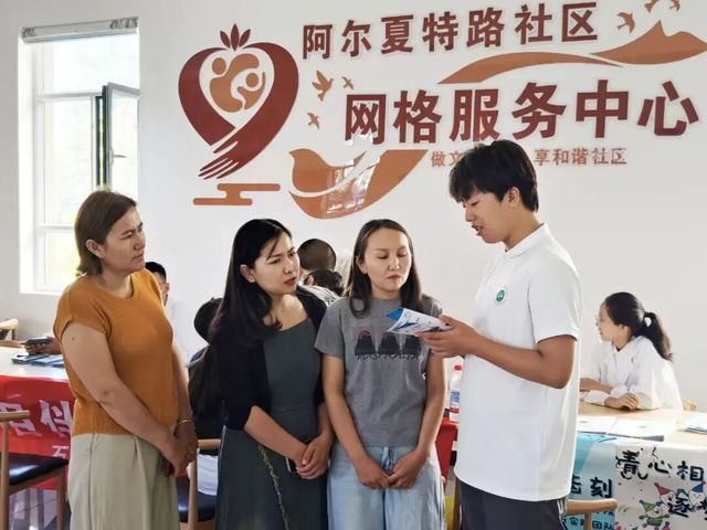 图为实践团在阿尔夏特路社区进行口腔科普活动