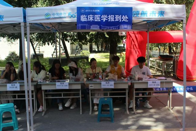沿着街道走,一个个帐篷依次排开,帆布上的专业名称格外清晰:“临床医学”“护理学”“口腔医学”……每个帐篷里都摆着桌椅,师哥师姐守在桌前,接过录取通知书、入学登记表,指尖快速核对信息,遇到新生手忙脚乱找表格,他们还会帮忙整理,轻声说“别慌,一项项来就行”,让繁琐的流程变得格外安心。