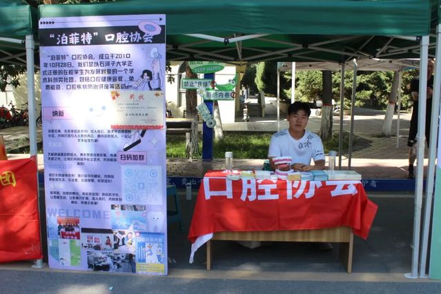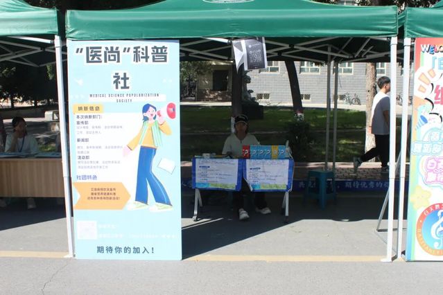 接下来的社团纳新处更是充满了活力。医尚科普社有趣的医学知识问答游戏,就可参与抽盲盒环节。泊菲特口腔社团的牙科知识小活动,吸引着新生驻足观赏。这里既有知识的碰撞,也有游戏的欢乐,连空气里都飘着让人想加入的热闹劲儿。