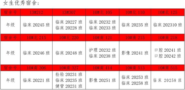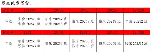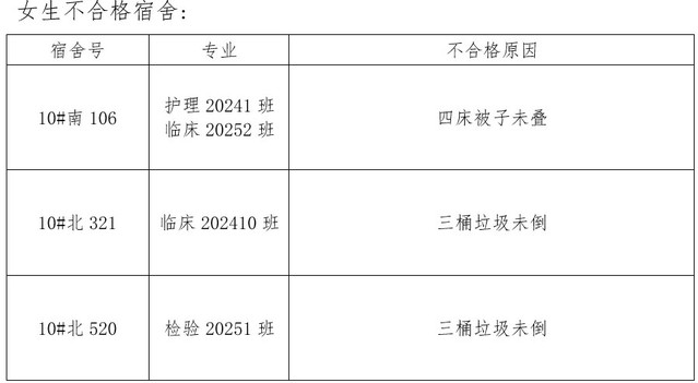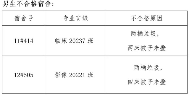 需改进的宿舍公示: