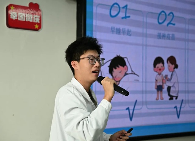 志愿者们放慢语速、加大肢体动作幅度,细致讲解作息规律、疫苗接种、合理饮食等健康要点,每讲完一个知识点便及时开展互动。针对部分孩子的理解差异,志愿者们蹲下身来,手把手演示 “七步洗手法”,将抽象的健康知识转化为可直接模仿的具体动作,让孩子们在实操中轻松掌握防护技能。