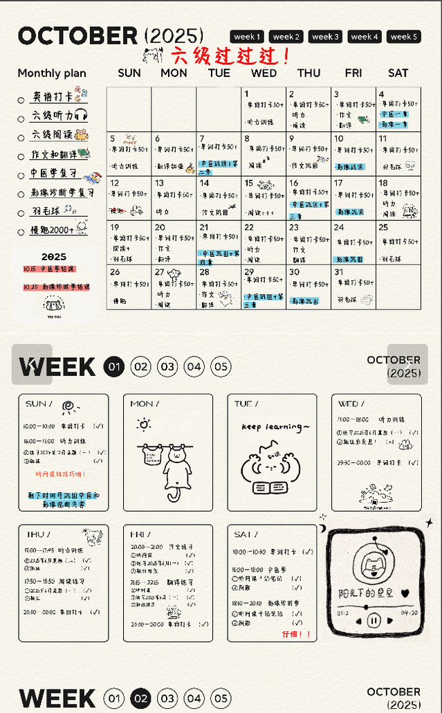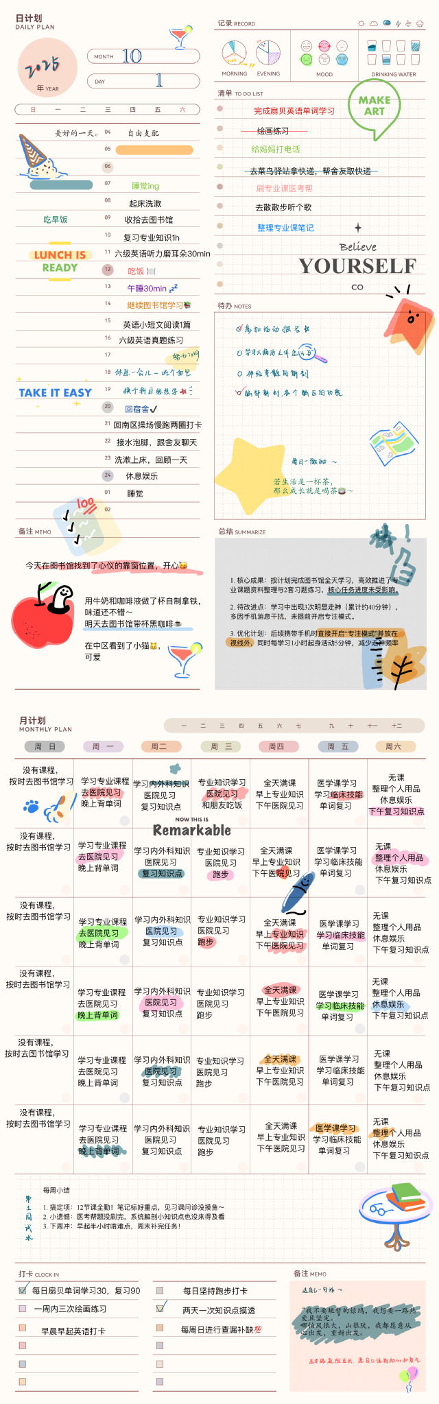 学习计划表挑战赛不仅是医学生规划能力的试炼场,更是学子们交流学习方法的舞台,选手们以清晰的规划逻辑与前瞻的学习视野,彰显了医学生的专业素养与成长担当。