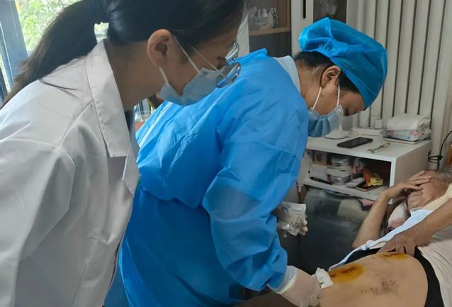 八月的阳光灼热,我们提着药箱走入社区狭窄的楼道。叩门声在寂静的楼道里回响,门内却无声无息。半个小时前明明刚通过电话,此刻却无回应。老师低声提醒:“老奶奶耳朵不好,我现在打个电话试试。”我伫立在门前,忍不住想,那长久寂静的日子,究竟是怎样一种孤绝?听不见邻里的闲言碎语和家长里短,但也听不清家人的关切叮咛。终于,门开了,老奶奶脸上盛满歉意,口中反复念叨着听不见的无奈。她血压血糖尚稳,饮食规律,精神还很不错,而她的老伴则躺在床上,一条伤腿需要换药。爷爷一边劝慰因听不见而愧疚的奶奶,一边向我们道谢。碘伏棉球小心触碰皮肤,爷爷的腿伤在缓慢痊愈。奶奶在一旁看着,不停询问是否需要帮手,我们只能一次次摆手示意——她的世界声音微弱,我们的忙碌她无法真正参与,只能手足无措地站在一旁,眼里都是被阻隔于外的焦急。