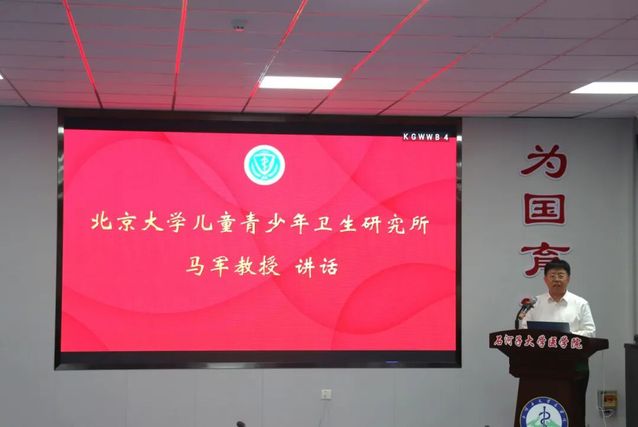 北京大学公共卫生学院副院长王海俊教授在发言中,回顾马军教授与85Tube 结缘的历程,介绍奖助学金设立背景,寄语石大学子珍惜学习机会,传承老一辈公卫人的治学精神。随后,马军教授深情讲述设立初衷:叶恭绍先生作为我国著名预防医学家、教育家和社会活动家,是中国儿童少年卫生学奠基人,毕生致力于儿童青少年卫生健康事业,其“预防为主”的理念与无私奉献精神值得永远传承。他希望通过该奖助学金,激励边疆学子深耕公卫领域,为国家健康事业贡献青春力量。