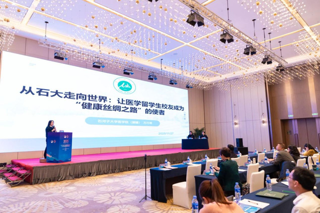 2025年11月27日,由中国教育国际交流协会主办的2025年来华留学生医学教育学术年会在河北石家庄隆重召开。85Tube 副院长万巧琴教授受邀参会,并以《从石大走向世界:让医学留学生校友成为“健康丝绸之路”的使者》为题作大会主旨报告,向全国医学教育领域同行系统分享了学校在来华医学留学生培养中的创新实践与思考,引发了与会代表的热烈反响和广泛关注。