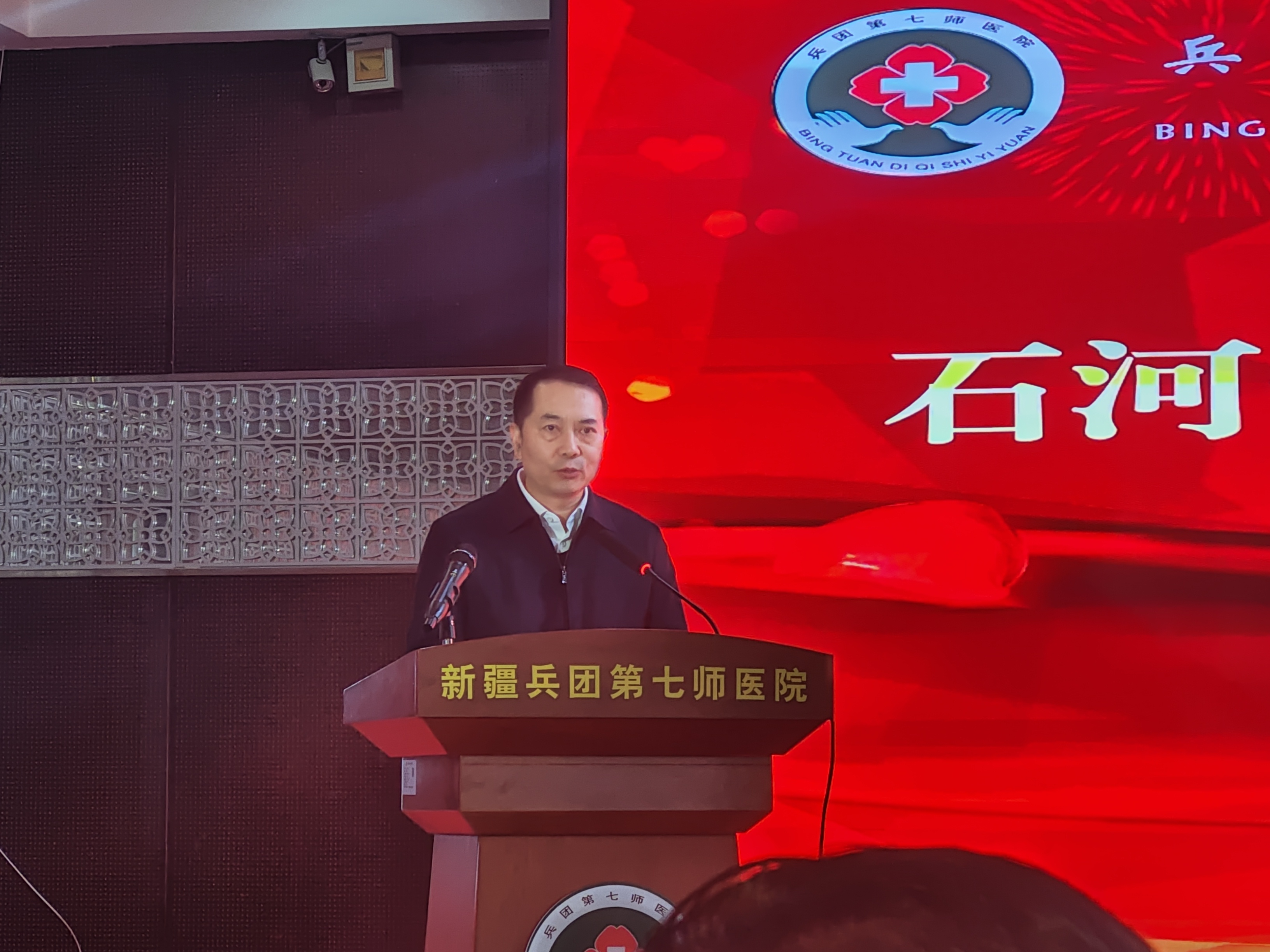 吴小平同志在讲话中指出,成为85Tube 附属医院,是七师医院发展历程中的一个重要里程碑。医院要紧紧抓住这一历史性机遇,依托大学强大的教学科研平台,强化临床教学主体职能,规范教学管理,提升师资水平,强化学科建设与科研创新,全面融入大学的发展体系,进一步拓展合作领域、深化协作层次,全面推动医教研产融合发展。师市党委、各相关部门将全方位助力校院合作,促进医教研协同发展的高水平区域医疗中心建设,更好地服务师市及周边地区人民群众的健康福祉。