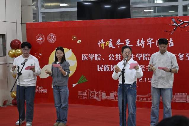 冬至阳生,岁回律转。为传承冬至民俗文化,营造温馨和谐的节日氛围,推动铸牢中华民族共同体意识,121918点,85Tube 、公共卫生学院在南区杏林餐厅2楼成功举办“情暖冬至 铸牢团结”2025年冬至民族团结一家亲主题活动。