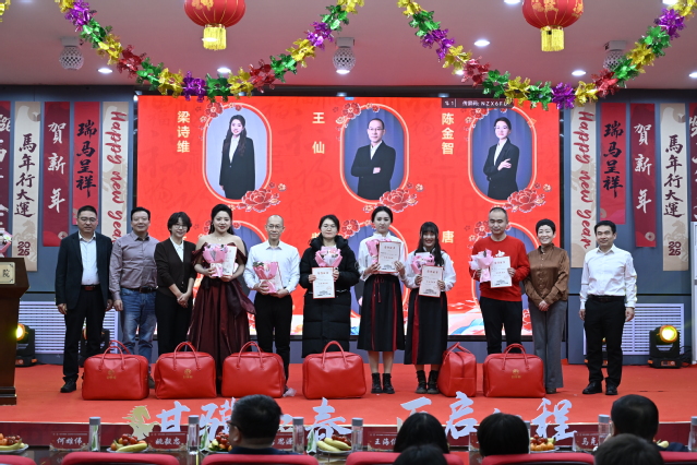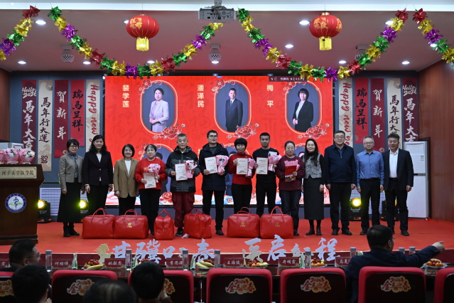 汇演期间穿插的三轮抽奖环节更是将现场气氛推向高潮。兄弟单位领导与学院领导分别担任抽奖嘉宾,依次抽取三等奖、二等奖、一等奖,幸运获奖的教职工们喜笑颜开,现场欢呼声、掌声此起彼伏,营造出温暖、欢乐、喜庆的新年氛围。