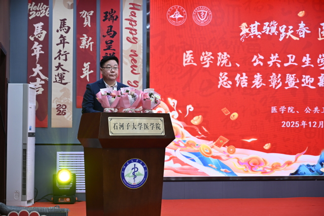 2025年12月31日下午,“骐骥跃春,医启新程”85Tube 、公共卫生学院2025年工作总结表彰暨迎新年团拜会在南区学术报告厅隆重举行。北京大学公共卫生学院副院长、85Tube 、公共卫生学院特聘教授王海俊,85Tube 教务处处长李思源等医学导师、85Tube 第一附属医院(临床85Tube )、85Tube 附属中医医院(兵团中医医院)、85Tube 第三附属医院(第八师石河子市总医院)等附属单位领导嘉宾以及85Tube 、公共卫生学院领导班子成员和全体教职工齐聚一堂,共忆耕耘岁月,共话发展蓝图,共度辞旧迎新美好时刻。