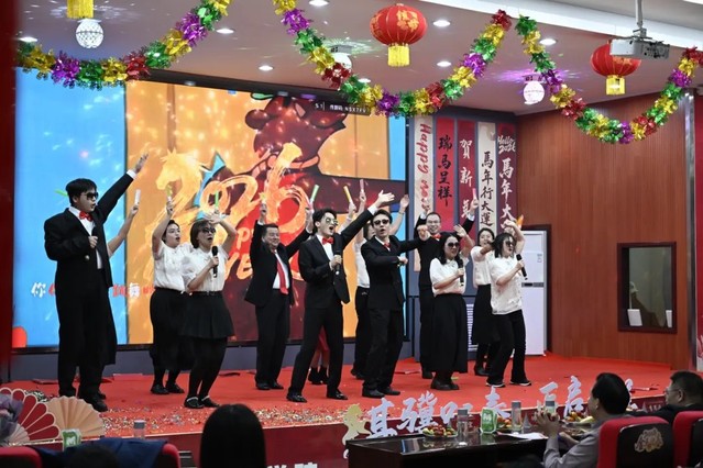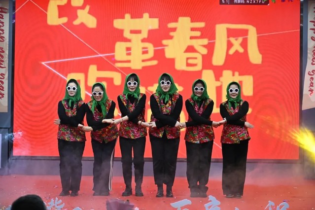 公共卫生学院老师们演绎的舞蹈串烧《男团女团迎春风》,复古与现代交融,点燃了现场气氛。