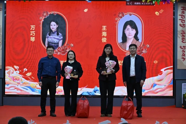 汇演期间穿插的三轮抽奖环节更是将现场气氛推向高潮。兄弟单位领导与学院领导分别担任抽奖嘉宾,依次抽取三等奖、二等奖、一等奖,幸运获奖的教职工们喜笑颜开,现场欢呼声、掌声此起彼伏,营造出温暖、欢乐、喜庆的新年氛围。