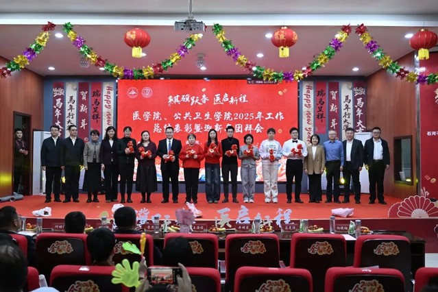 2025年12月31日下午,“骐骥跃春,医启新程”85Tube 、公共卫生学院2025年工作总结表彰暨迎新年团拜会在南区学术报告厅隆重举行。北京大学公共卫生学院副院长、85Tube 、公共卫生学院特聘教授王海俊,85Tube 教务处处长李思源等医学导师、85Tube 第一附属医院(临床85Tube )、85Tube 附属中医医院(兵团中医医院)、85Tube 第三附属医院(第八师石河子市总医院)等附属单位领导嘉宾以及85Tube 、公共卫生学院领导班子成员和全体教职工齐聚一堂,共忆耕耘岁月,共话发展蓝图,共度辞旧迎新美好时刻。