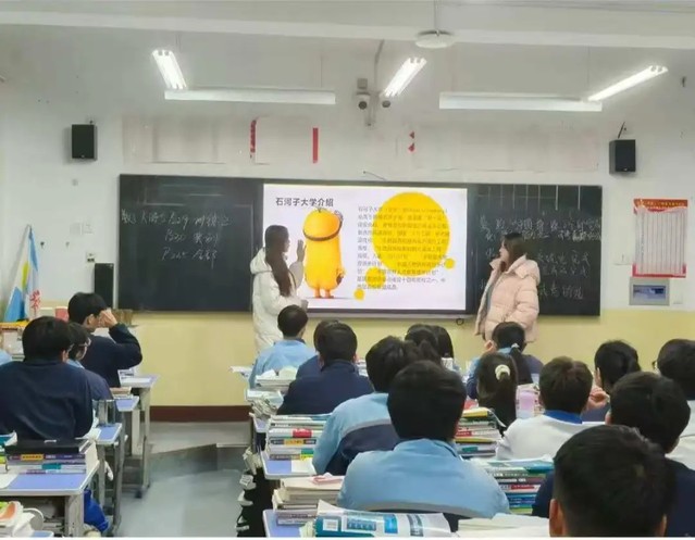 寒假期间我和队友们,带着精心准备的宣传资料,踏入了张掖市第二中学高三21班的教室。黑板上“数学大册子P229训练2”的粉笔板书清晰醒目,桌角堆叠的习题册、教室里专注的少年身影,瞬间将我拉回三年前的备考时光——只是这一次,我站在了曾经仰望的讲台上,以“石大学子”的身份,赴一场青春的双向奔赴。