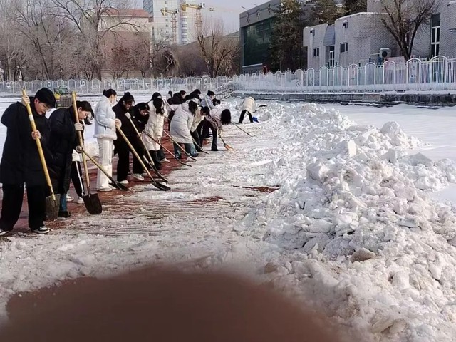 预防医学系团总支走进红山街道33社区,开展健康科普、环境清洁等便民服务,把专业知识转化为服务群众的实际能力;院学生会志愿者开展校园清雪行动,对杏五楼周边、操场等区域积雪全面清理,对自行车摆放进行整理,保障师生出行安全畅通。