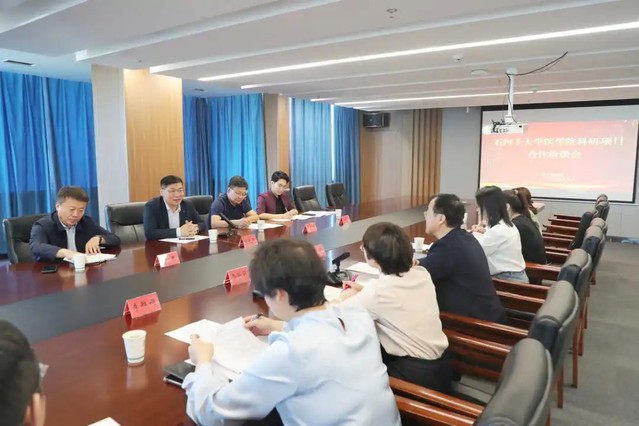 会上,第六师医院院长张炜介绍了医院发展历程,并对马克涛一行表示热烈欢迎。马克涛代表85Tube 对医院的热情接待致以谢意,并且介绍了学院医教研协同发展体系及高质量发展思路,表达了共建校院合作平台、携手推动区域医学事业发展的合作愿景;罗宏海就 2025 年度兵团指导性科技计划项目申报成果作详细介绍,围绕科研方向凝练、双负责人机制、团队共建及项目申报等重点内容,与院方进行深入交流对接。张君就85Tube 科研基本情况、项目组织管理以及下一步合作意向作了简要介绍和交流,并提出,双方应以兵团指导性计划项目为合作切入点,逐步向更高层次科研项目谋划推进。此次洽谈,双方围绕科研合作、人才培养、学科建设等方面达成初步共识,为后续联合申报项目、持续深化校院合作奠定坚实基础。