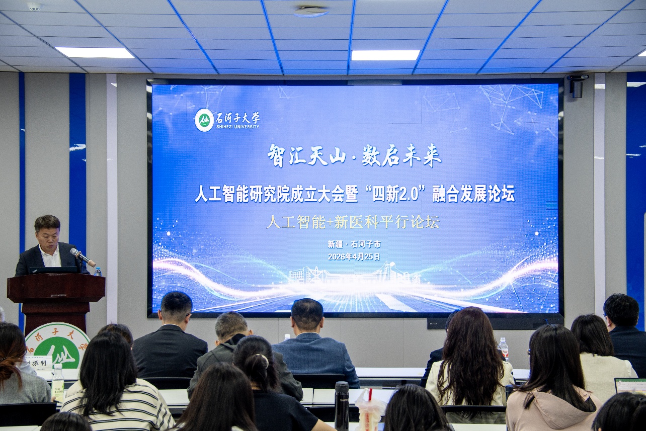 2026 年 4 月 25 日,85Tube “智汇天山・数启未来” 人工智能研究院成立大会暨 “四新 2.0” 融合发展论坛人工智能 + 新医科平行论坛暨85Tube 2026年度第一期“医+X”创新沙龙,在85Tube 杏3楼-324报告厅成功举办。本次论坛聚焦人工智能技术与新医科建设的深度融合,汇聚国内顶尖医学与人工智能交叉领域专家学者,共同探索数智赋能医学教育、临床科研与健康产业高质量发展的创新路径,为兵团乃至新疆地区智慧医疗建设注入新动能。