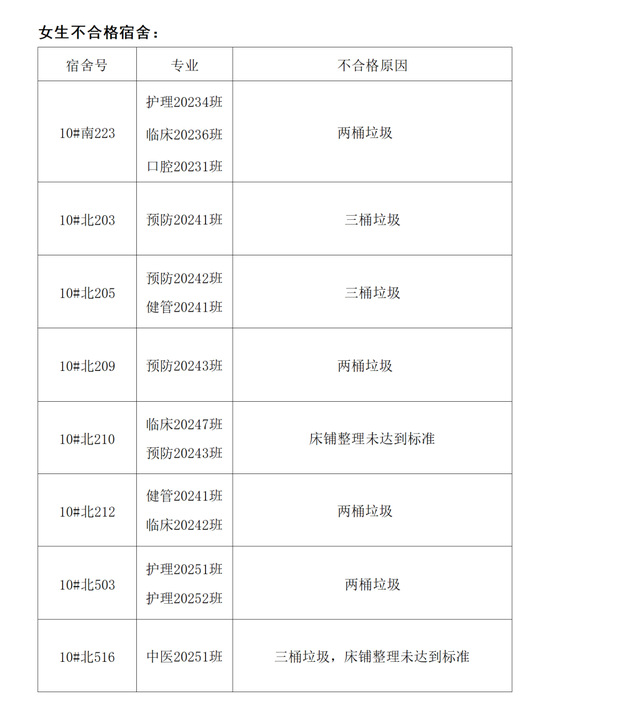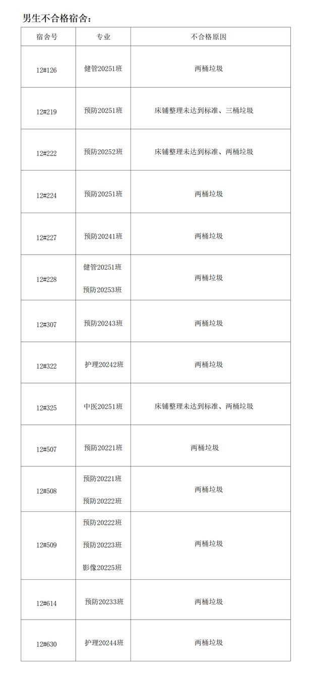 需改进宿舍公示: