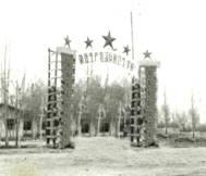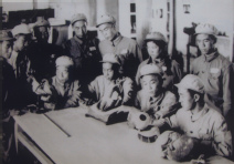 生产建设兵团卫生学校时期的校门 | 新疆军区卫生学校时期学员在解剖学实验室(1950年) |